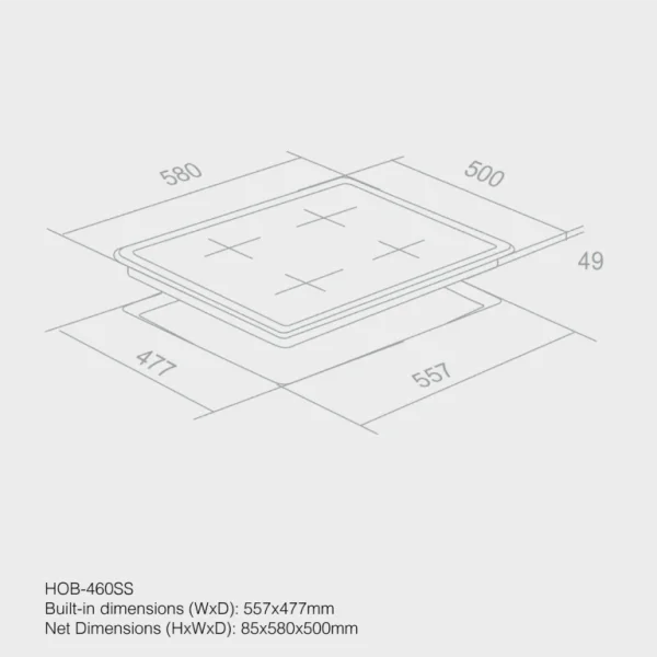 - Built-in dimensions (WxD): 557x477mm