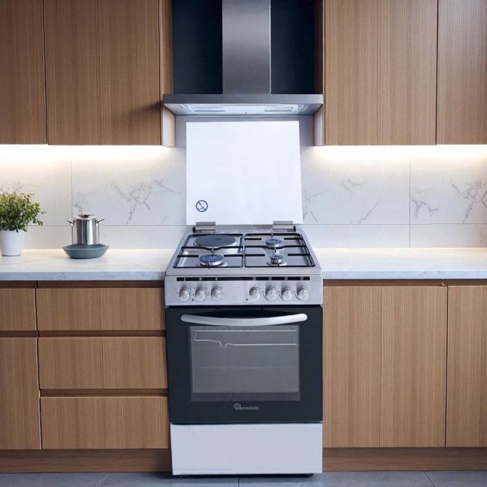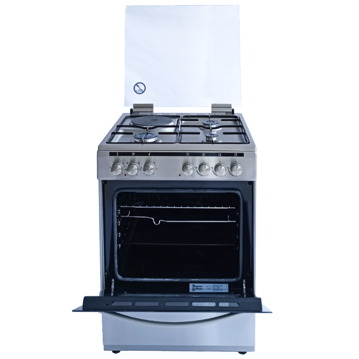 Upgrade your kitchen with the Ramtons RC/610 Cooker, available at Leviticus Electronics. This 60x60cm half inox standing cooker features 3 gas burners, 1 electric hotplate, and an electric oven with grill, perfect for medium households. Consequently, it delivers versatile cooking for boiling, frying, or baking in a sleek stainless steel and black design.